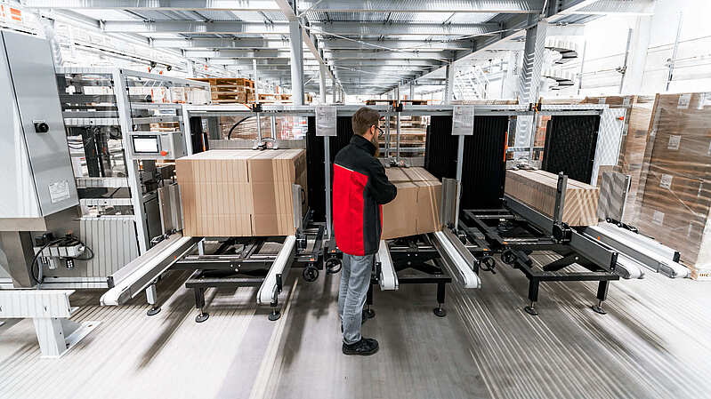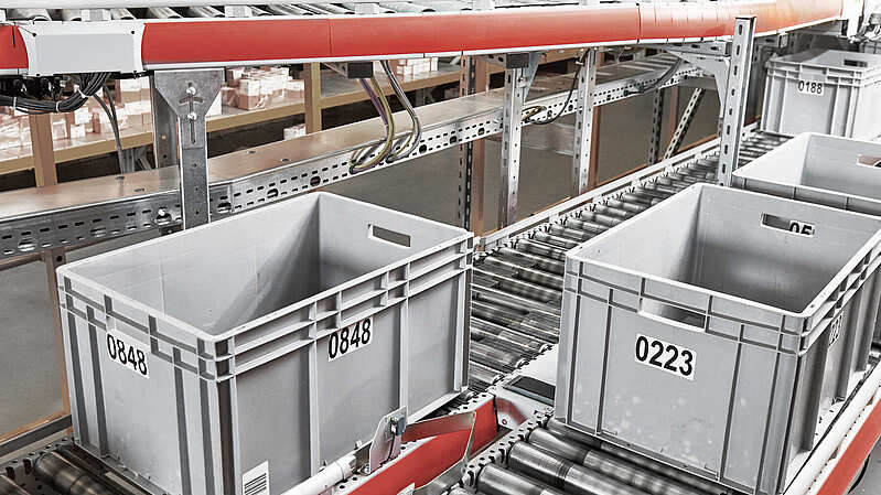With these picking systems, workers can retrieve ordered quantities more quickly and confirm their picks. After placing the items in a picking container, they deliver it to the packing stations (single-stage picking). In some cases, items are packed directly into shipping boxes at the storage location, a method known as pick and pack.