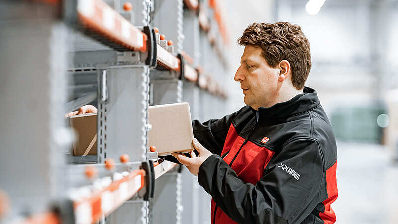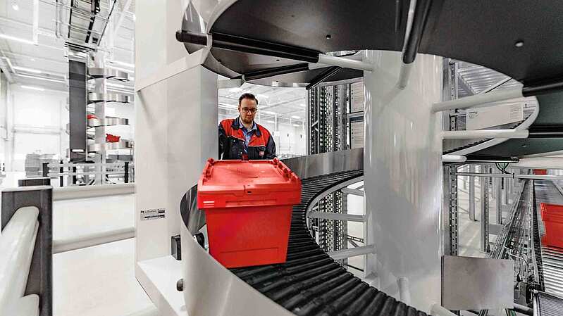 A fully automated warehouse system working in conjunction with picking vehicles and robots can significantly increase the degree of automation: from dynamic provisioning through to product retrieval and order consolidation.