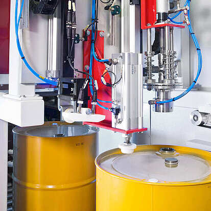SMB line filling systems are used when large quantities need to be filled continuously and fully automatically. Various designs enable filling into canisters, buckets, drums or cans via one, two, three or four filling points. The filling methods that can be selected are subsurface filling, underside bunghole filling or above-surface filling.