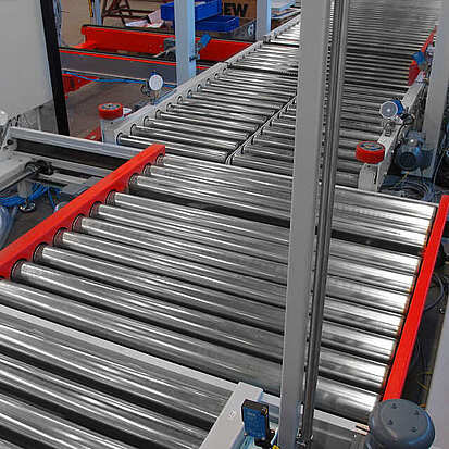 The ideal components for distributing pallets to different conveyor lines: SMB transport vehicles and shuttles. Their unique selling point: the shuttle can cover long distances quickly and easily. Roller tracks and chain conveyors reach their limits here.