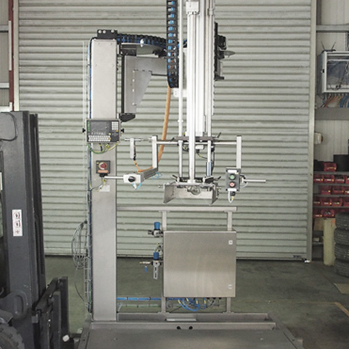 With our filling columns, you can easily fill liquids into empty containers – directly on a pallet.