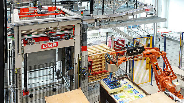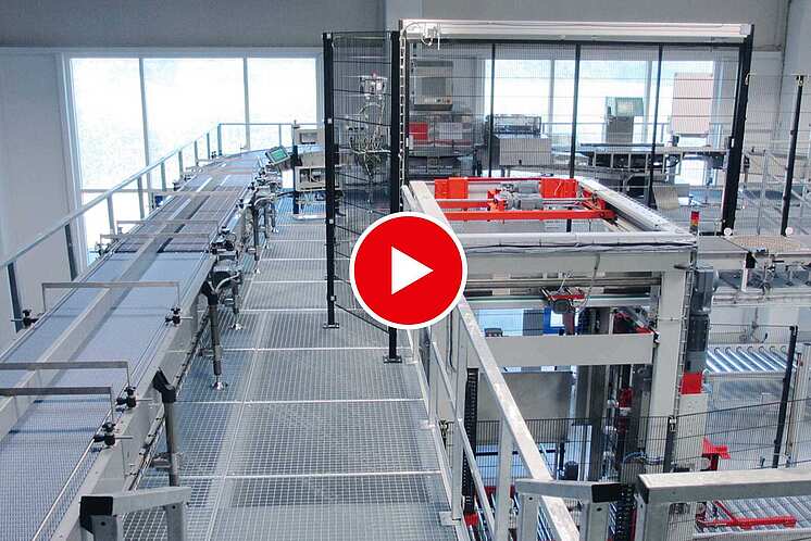 - Pallet transport: single or double-deck conveyor technology (FH 500/750 mm)