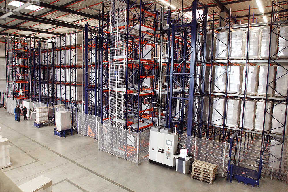 What sounds obvious is by no means the standard: in many companies, the available space is not utilized and storage capacity is wasted. Efficient storage and distribution of goods saves money in the long term, and not just in stock-intensive companies. A high degree of space utilization can best be achieved with a compact storage system and high-bay racking, as these make optimum use of the height. Often even more space can be used than operators initially assume. The use of truck shuttle systems, with which goods can be stored and retrieved on all levels - ideally at the same time - is crucial for the flow of goods in the compact storage system. A compact storage system including truck shuttle conveyors is ideal for installation in existing warehouses; new buildings can also be built as roof- or wall-supported racking (for example in a silo).