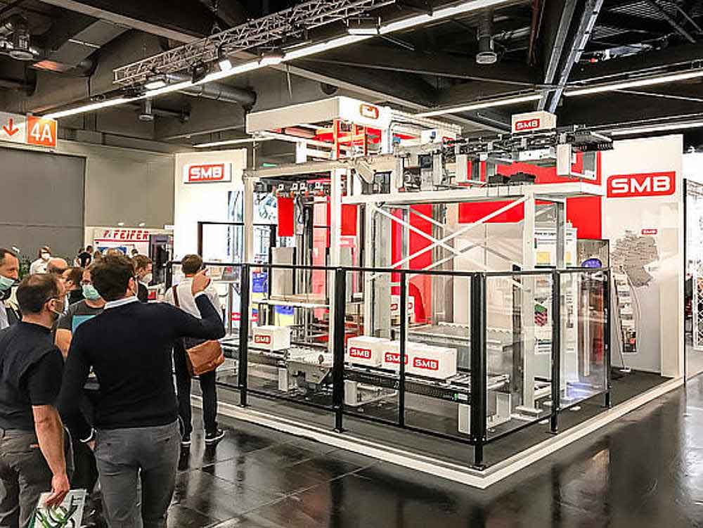 SMB International GmbH can look back on a successful appearance at this year's FACHPACK in Nuremberg. At the first major trade fair in more than a year and a half, the company presented visitors with clever solutions in the field of palletizing technology. The newly designed SHARK layer palletizer was the main attraction for SMB International.