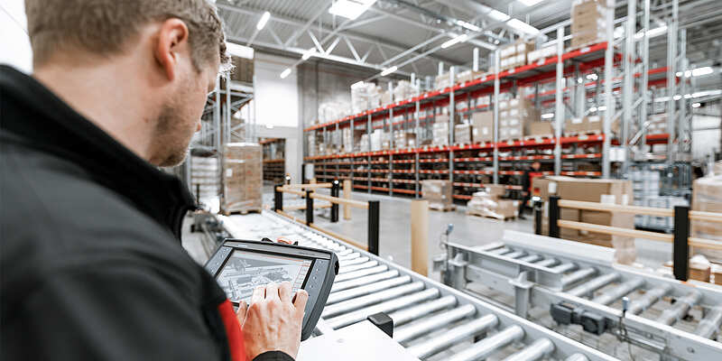 In central warehouses, small parts warehouses can be combined with Automated Pallet Warehouses and heavy duty conveying technology (up to 1,500 kilograms) and container conveyor technology (up to 30 kilograms) to form an efficient internal logistics chain. These systems complement each other and allow for separate storage of heavy loads on pallets and small items in boxes. A single warehouse management system ensures both systems work together and helps improve intralogistics.